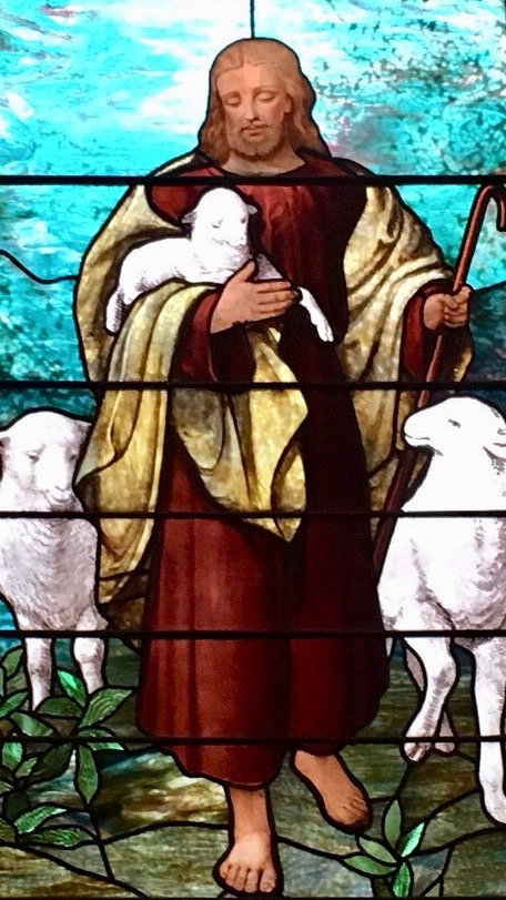 Our beautiful Good Shepherd stained glass window in the sanctuary.